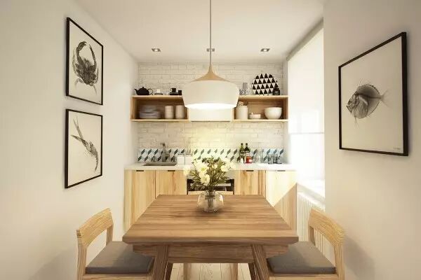 一张可以收起来的餐桌,需要的时候放下使用、不使用的时候可以收起来不浪费空间。