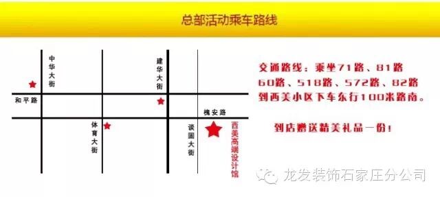 活动地址:槐安路与谈固大街交口东行100米路南,龙发装饰