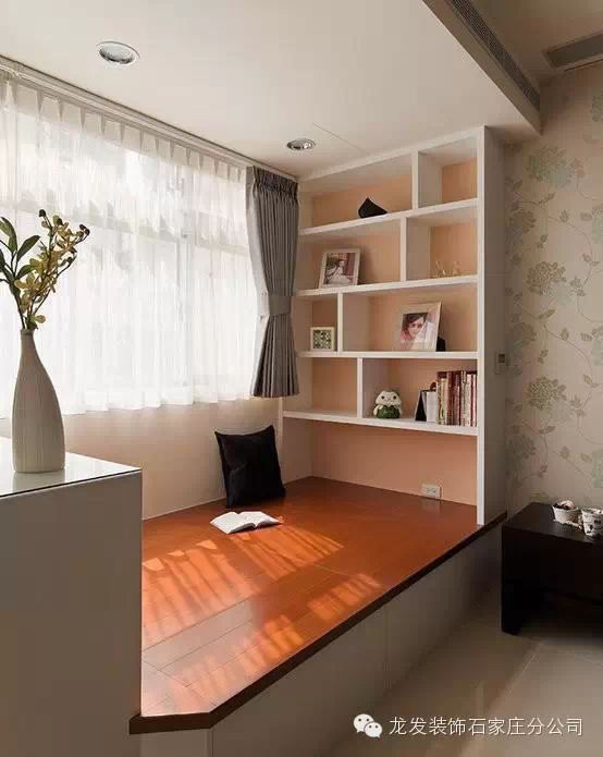 ▲阳台改造而成的榻榻米书房!冬日的午后捧上一本书,阳光从薄薄的窗纱透过,书香袅袅,温暖而惬意。