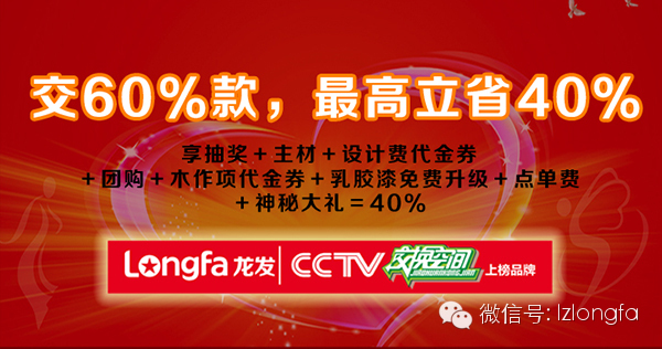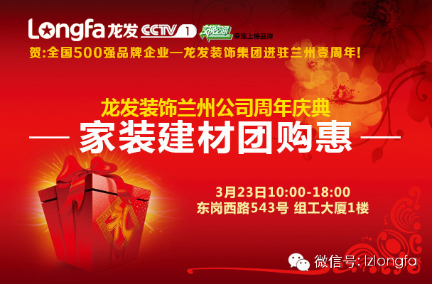 3. 23来临之际,龙发装饰兰州公司周年庆典之家装建材团购惠,为更大的回馈广大新老业主,推出的周年特惠,将重磅出击!最高立省40%!