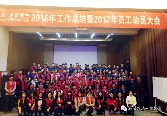 2月16日,三星装饰精英欢聚恒宇商务酒店,隆重召开广东九艺三星装饰(威海)2016年工作总结暨2017年员工动员大会!