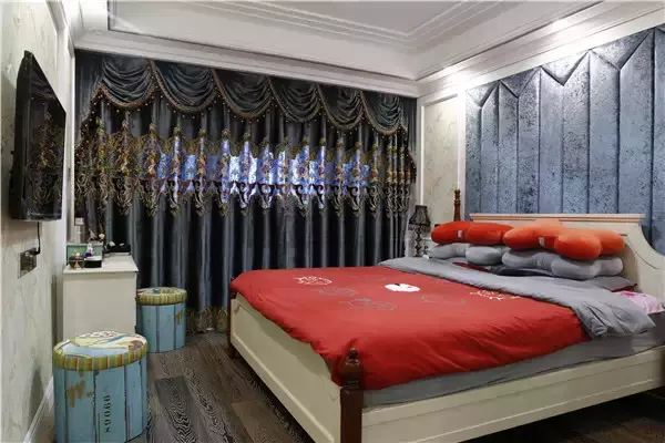 灰蓝色调营造私密、温馨的休息环境,搭配撞色饰品是最常用的装饰手法。