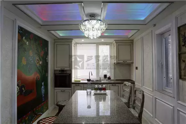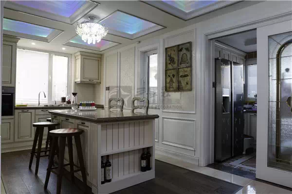 厨房的西式岛台,兼具实用性和造型功能,增大储物空间,也可以做为一个特色的酒柜。