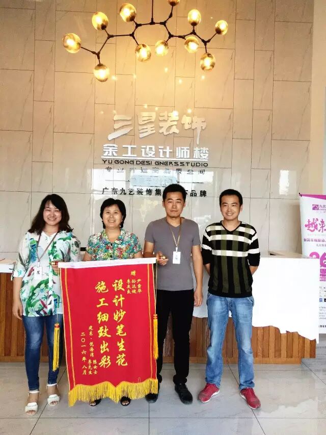 施工结束后,李先生对工程完美体现了设计初衷非常满意,带着满满的感谢亲自编辑了锦旗上的文字,诚挚地邀请设计师和监理到新家做客。