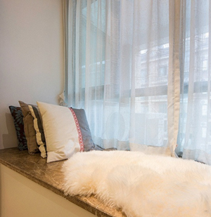 人造石是最普遍的飘窗台面用材,优点是不怕潮,不会变形,维护方便。缺点是在寒冷的冬天会比较冷,如果喜欢在飘窗台面上小憩的话就一定要弄张毯子垫一下,而且价格相对天然石贵了一点。