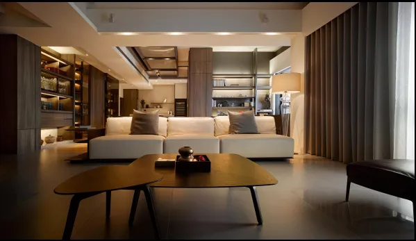 ►选择以梧桐木皮染深,处理出新世代禅风的机能所需;转入厅区则是带入石材的低歛本质,构置风格明确的画面端景。