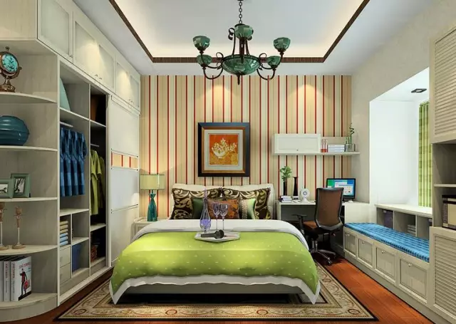 在色彩搭配上面选用怀旧系列的色系和贴图进行饰品、墙体的拼搭,凸显出整体空间的古典与高雅感。窗台定制连接书桌与书柜的塌塌米,让卧房休息、工作、娱乐三样功能都有所兼顾。
