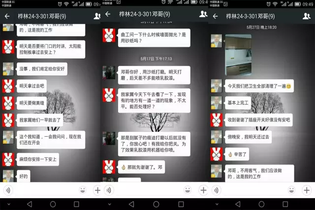 在令人眼花缭乱的装修行业中,因为对装修质量心存疑虑而迟迟不放心开始动工?查资料、找攻略,网络给了人们了解装修的方便,但“纸上得来终觉浅”,想要直观、深入地了解,一定要在现场查看。烟台兴北居装饰携公司各部门资深从业人士,开设每天实时跟踪报道工地进度、发现问题、解答问题等各项服务于一体的微信群聊吧,让您随时随地了解自己家家装的进度,了解装修工序、工艺规范,将装修中容易出现的问题毫无隐晦的实时报道给您,让您放心把家装交给兴北居装饰,绝对是您家装最正确的选择!咨询热线:13156954937--邢淑翠话说再多,你可能以为我是在吹捧,我是在造假!真真假假看看下边我们微信群聊吧里的聊天记录您就知道啦~小区名称、楼号、单元号、门牌号、聊天时间都很详细的呈现在您眼前!