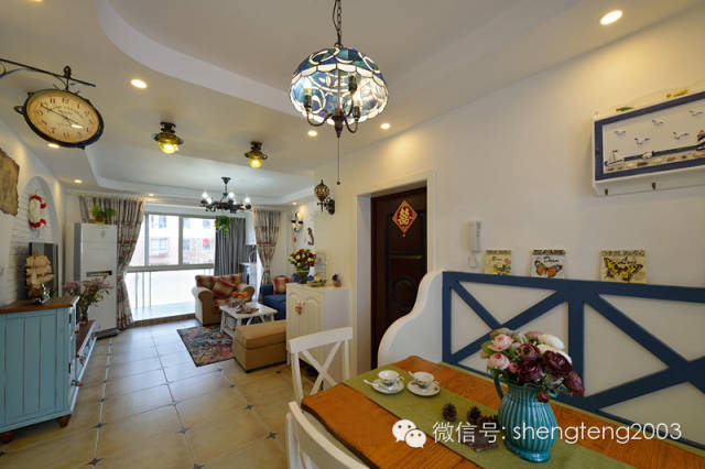 从餐厅看客厅全貌,很小清新feel,整个空间有一种很典雅的感觉