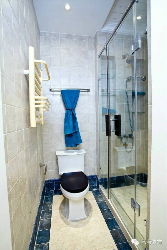 洗手间的空间也不大,墙面选用了和厨房一致的瓷砖,看上去十分干净和素雅。