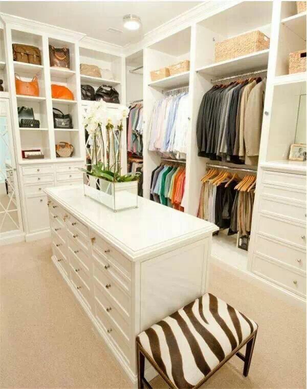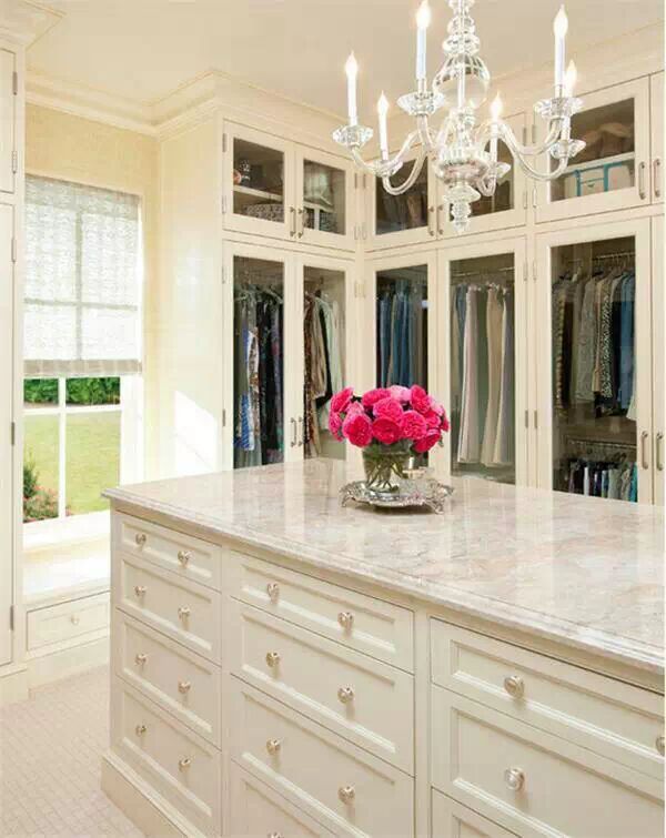 欧式吊灯,透明的衣物收纳间让你一目了然,再加上长方形的吧台式收纳柜,欧式和现代的精美结合