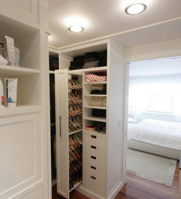 又是一个巧妙的收纳设计,拥有充分收纳物品的空间,并不破坏衣帽间的建筑格调。
