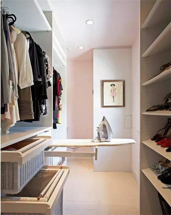 拥挤却整齐,精确运算空间大小来设计的衣帽收纳间,收纳物的陈列更像装饰一样精美。