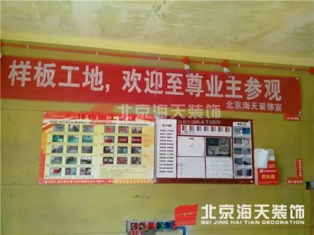 ▲恩施海天装饰的工地现场要求施工期间保持干净清爽,各种物料规定指定区域摆放。条幅、KT板什么的虽然成了揶揄者嘴里的面子工程,但也同样反映出我们对施工的精益求精。“活干的好坏就是人品的好坏”何尝不是时时勉励我们所有的施工人员的利器呢?