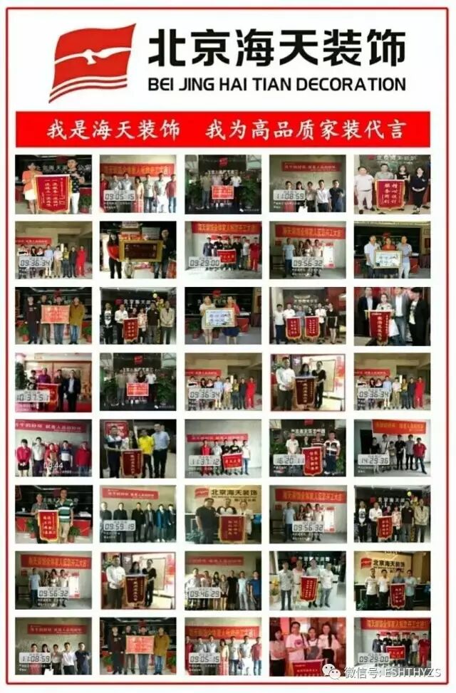海天装饰负责工程的家人张贴我们的服务理念,同时把我们施工人员的电话,照片全部张贴在海天专用标识上,方便后期施工人员对接