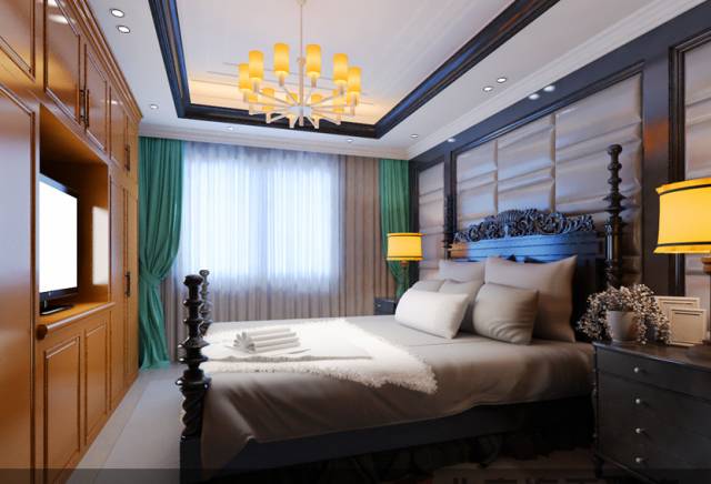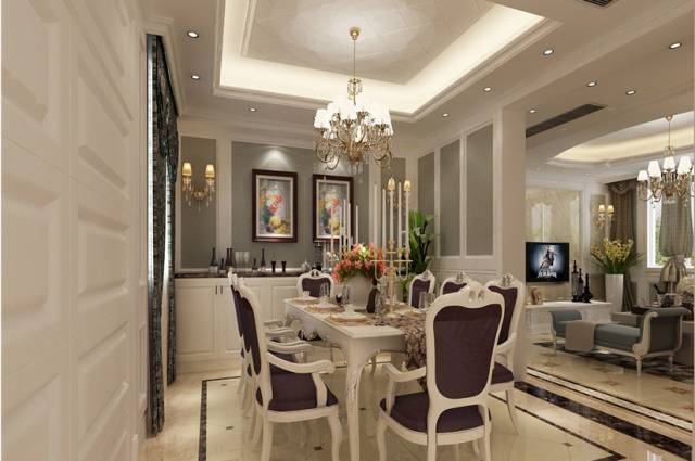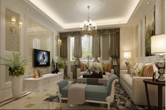 现代美式风格,追求华丽、高雅的古典风格。居室色彩主调为白色。家具为古典弯腿式,家具、门、窗漆成白色。擅用各种花饰、丰富的木线变化、富丽的窗帘帷幄是西式传统室内装饰的固定模式,空间环境多表现出华美、富丽、浪漫的气氛。