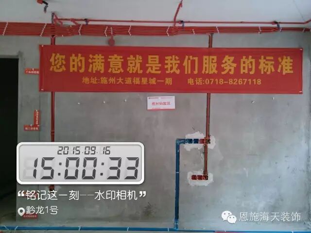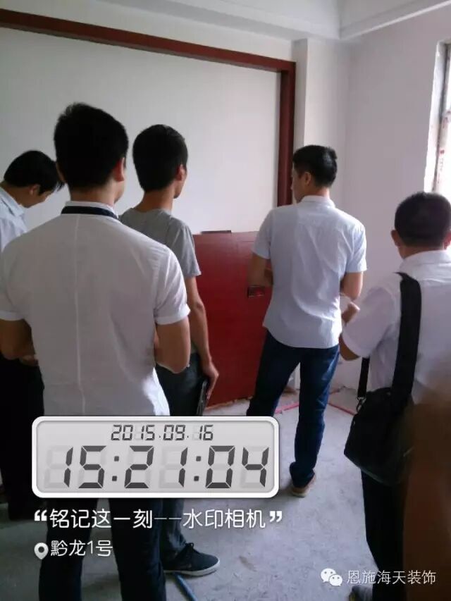 本周,恩施海天装饰工程部及总经理对黔龙一号进行巡检,也是刚开工的还处于水电阶段的,恩施海天装饰一直十分重视巡检工作,对巡检中发现的问题及时解决,此次巡检也现场发现和解决了不少问题。在整个水、电、瓦、木、油漆的施工过程中,海天工地要承受无数次的巡检,无数次的巡检保证了家装的品质,无数次的巡检让装修业主们很满意。