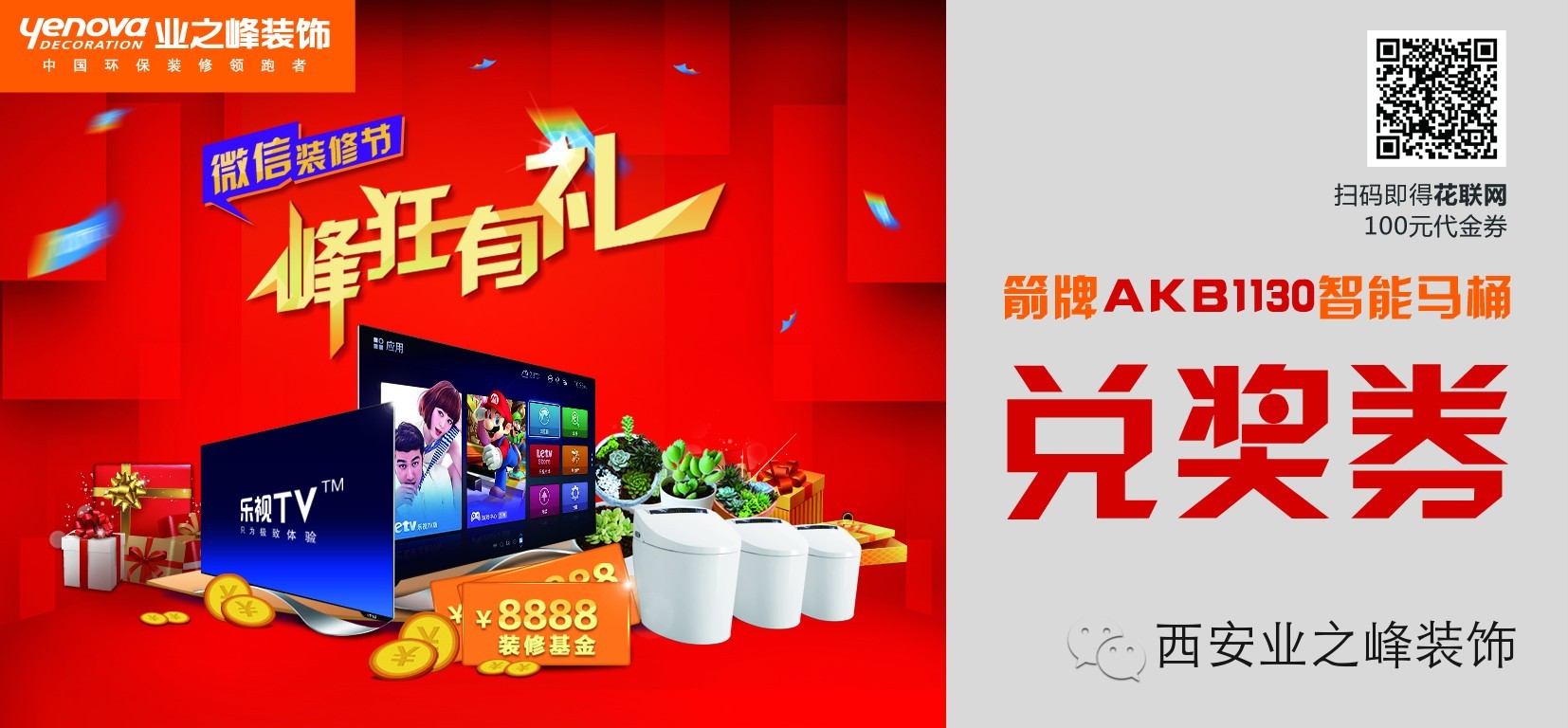 关注西安业之峰装饰有限公司官方微信并参与转发,即获得装修代金券。