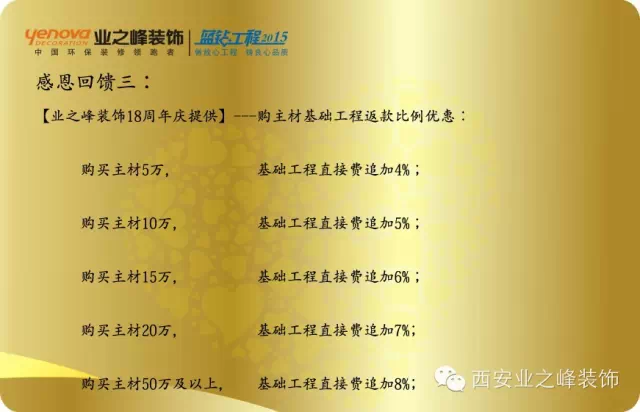 在这样一个动人的时刻,让我们4月18日欢聚一堂。共同庆祝这个意义非凡的日子。非常感谢各位,陪同我们公司一起走过了十八年。为喜迎业之峰18周年庆之际,答谢各位业主对我司厚爱,特推出感恩回馈活动!