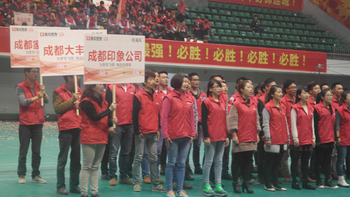 各分公司进入会场整理队伍。
