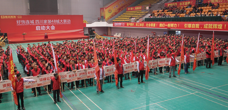 10月19日,星艺装饰四川子公司“好饰连城”家装48城大联动启动大会也是四川子公司入川13周年庆典在成都体育学院隆重举行。来自星艺四川子公司的48城50多家单位共1000余人汇聚成都,一场史无前例的“好饰连城”大联动盛会在这里正式启动。集团副总裁程碧、四川子公司黄勇总经理、集团营销企划中心陈和君主任以及行业领导代表等出席大会。来自四川地区各单位的数十家媒体和合作商以及业主代表应邀参加出席,共同见证这一家装盛会。