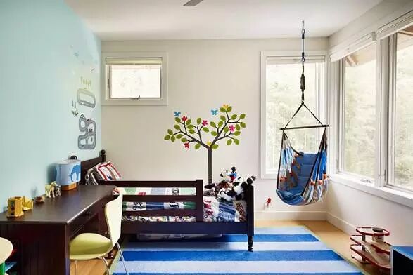 ❻ 简洁为主,随着熊孩子们健康茁壮的成长着,乱涂乱画似乎是每个孩子成长过程的必经之路,不要拘束他们的“创造天赋”,将儿童房的墙壁当成一个巨大的画板,也是一个不错的选择。