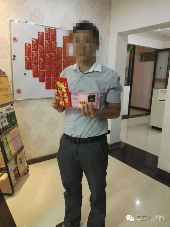 ①钦江丽景6#李先生、合同签订日期:2016年9月28日、签订金额85000元、喜中海空间装饰一等奖(乐视电视机一台 价值3500元)恭喜李先生!