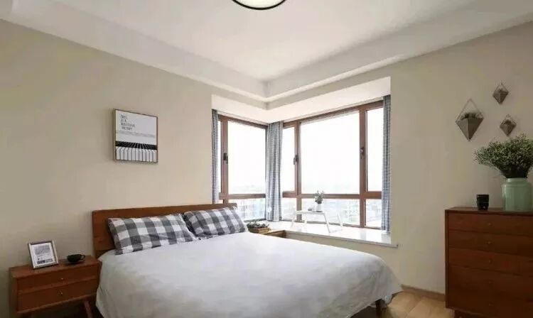 大面积的阳光从飘窗进来,加上绿植的点缀使空间增加了活泼的气息。