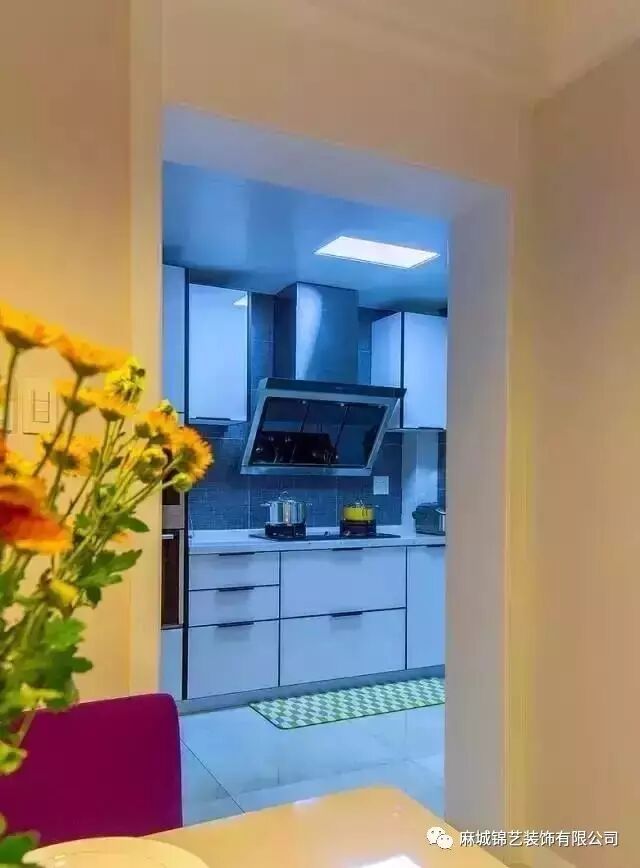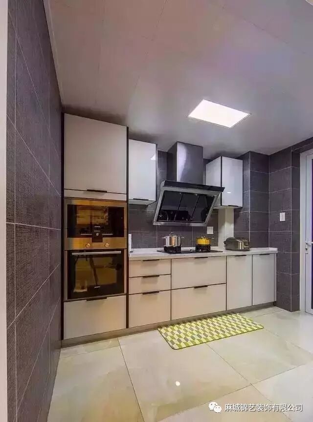 厨房主要色调是白色和灰色。