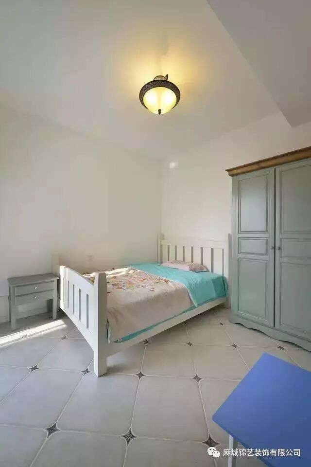 这两间卧室的地面同样用仿古的地砖进行装饰,墙面吊顶以简洁舒适为主。