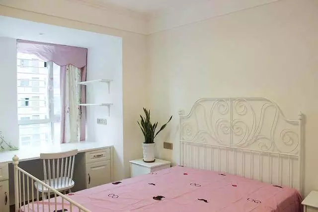 次卧室是为孩子准备的,空间不大,书桌就装在窗户边上,用贴墙的搁板做书桌,光线明亮,方便学习。