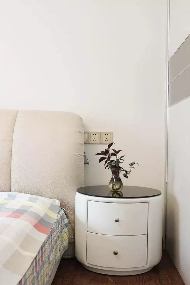 在选用床头柜的时候,不喜欢那种方形的,还是觉得这种圆形的好看,而且方便移动,也不会磕碰到。