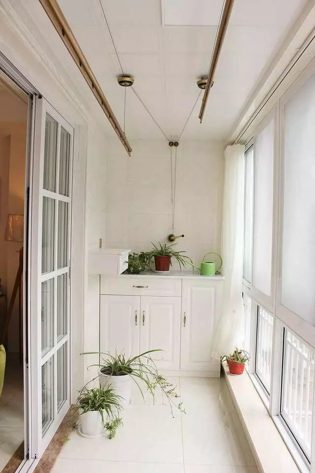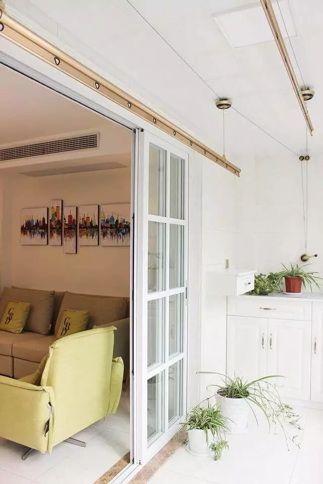 一直很喜欢这个多功能的阳台,除了种些花草,储物柜可收纳外,还可以晾晒衣服。在阳台上还安装了手摇式晾衣杆,双杆的,不用担心没地方晾衣服了。