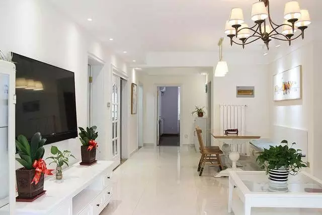 客厅与餐厅采用开放式设计,让空间变得宽敞明亮。电视柜和茶几上摆放一些绿植,可以装饰 空间,还可以净化室内的空气。