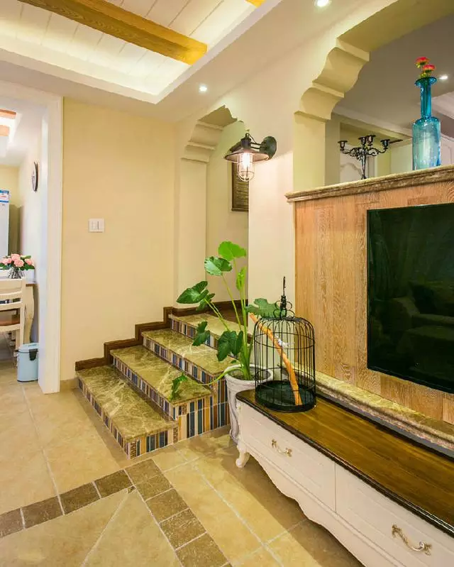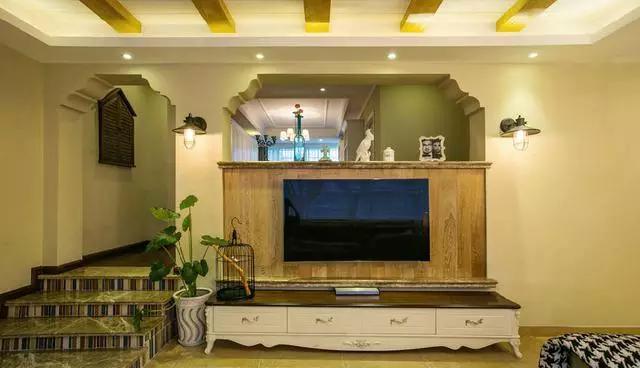 电视背景墙,和有特色的,和过道的门的造型一样,协调