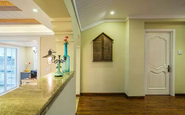 吊顶很有特色的,还有个小型的酒吧台,整体的色彩搭配的也很好