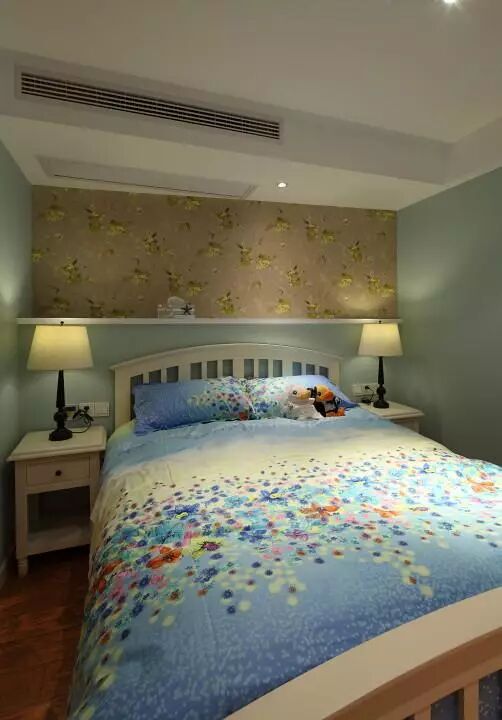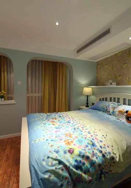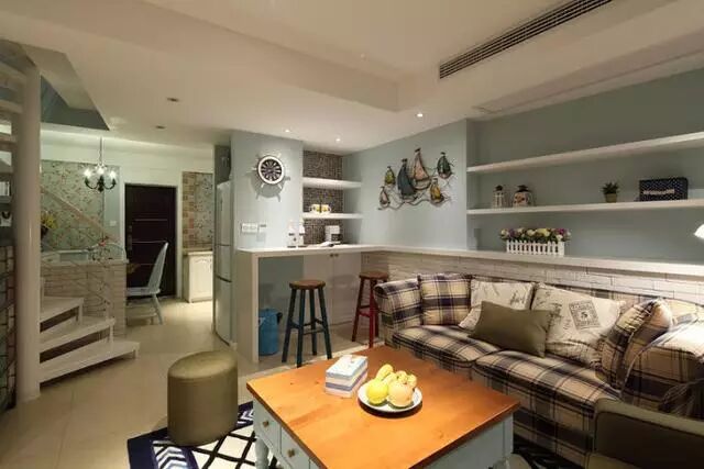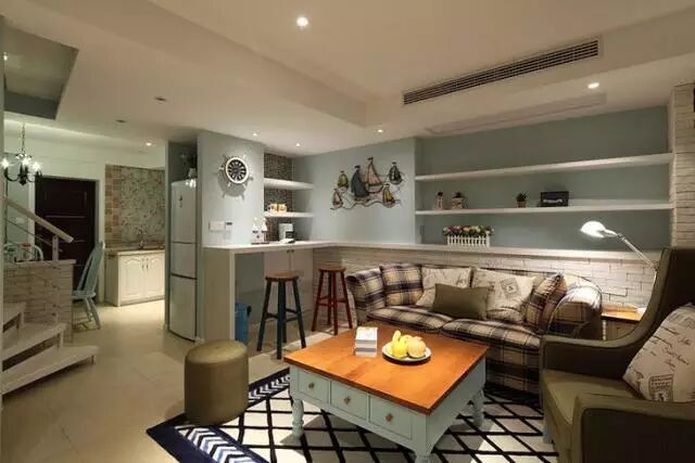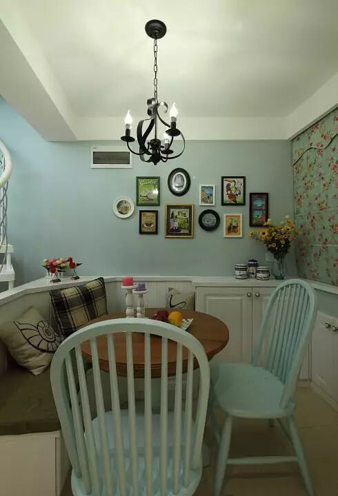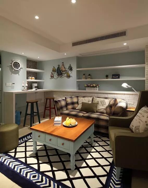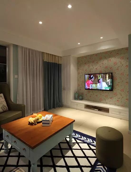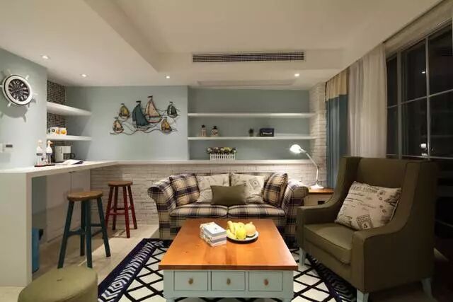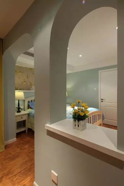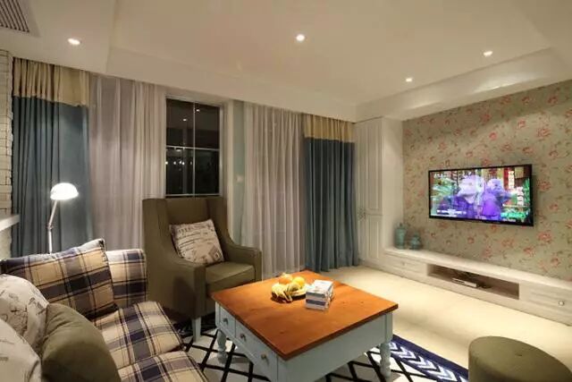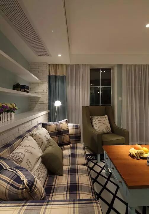 此案格调清婉惬意,雅致休闲,色彩多以淡雅的古董白居多,点缀清新色彩,美式线条随意干净!客厅墙面是清爽的白色,配上美式的家具,整体温馨舒适有调调。