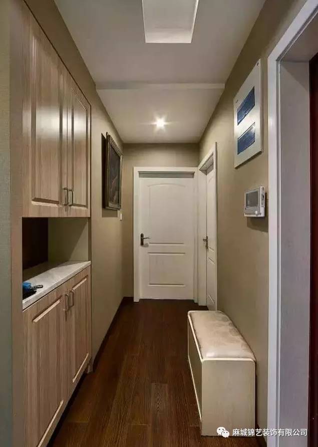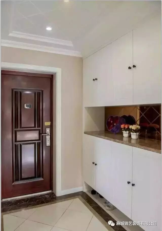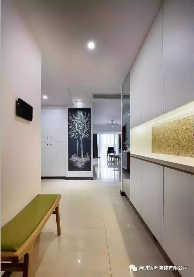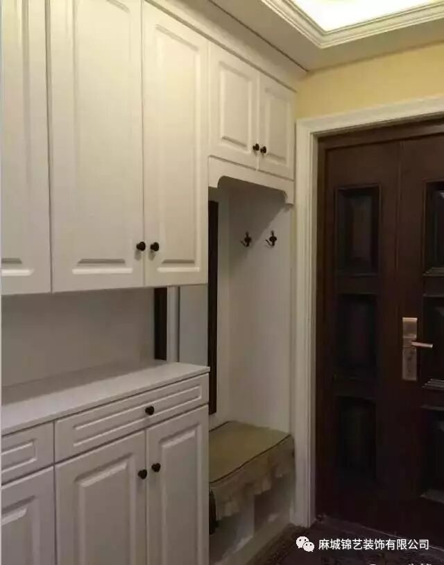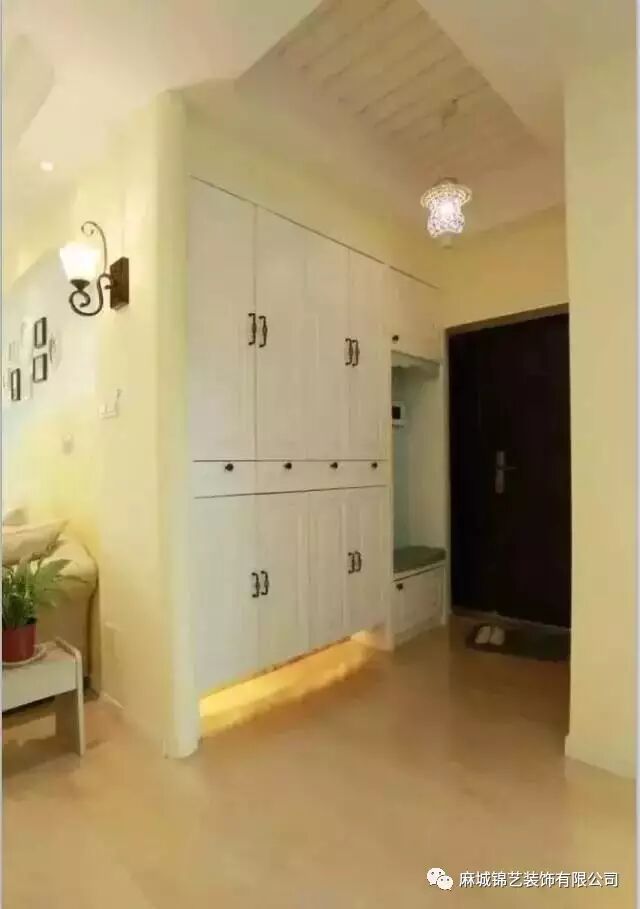 3、柜子上面一排吊柜用来收纳物品,玄关柜中间可以空出来用来放包包和钥匙,下面的部分用来储存鞋子,有条件的话,最好在做一个换鞋凳,方便老人小孩;