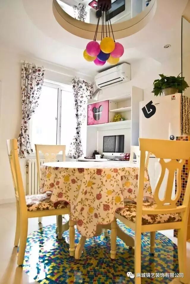 餐厅用了碎花图案的窗帘、桌布,还用了彩色气球型吊灯,我感到了一颗跳动着的少女心。