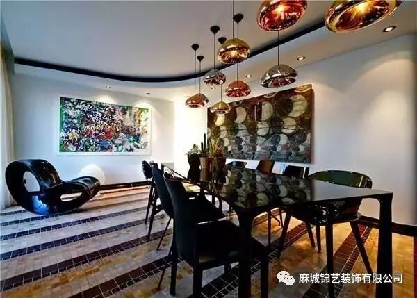 墙壁挂上装饰画很有艺术气息,W型餐椅时尚、简约又雅致。