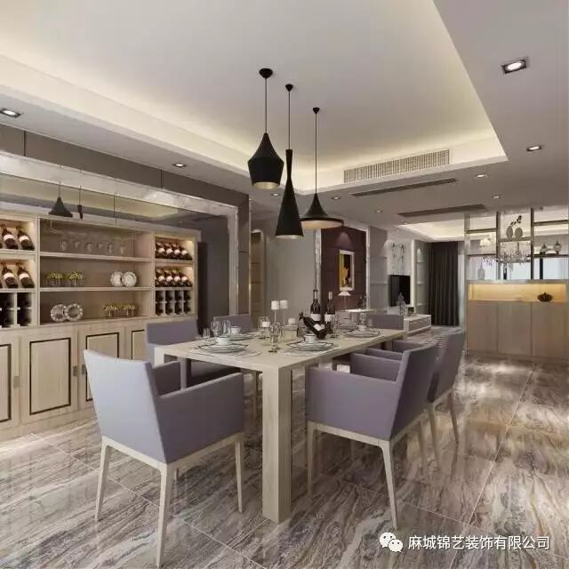 餐厅放一排储物柜,把红酒、酒杯和果盘摆在上面,餐厅变得高档,使用也很方便。