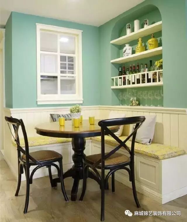 像这样在房间拐角处设计一个开放型的餐厅也很不错。