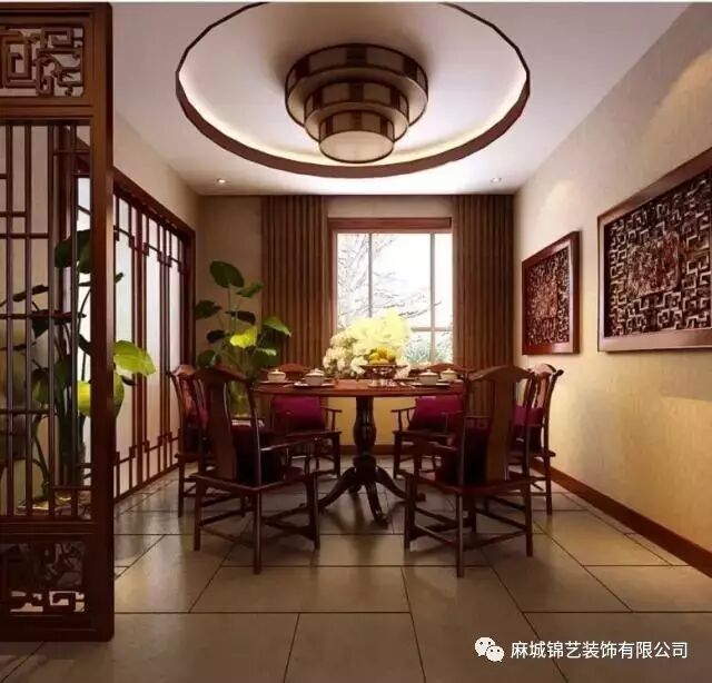 镂空的门和传统的屏风都可以用作隔断,绿植和挂画营造了中式的优雅、自然,壁灯、落地灯又有西方特色。
