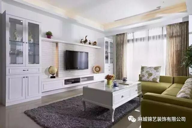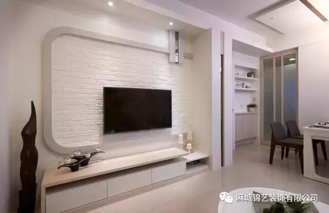 凹凸不平的白色墙砖拼凑的电视背景墙干净明亮,非常的简单,突出黑色的电视,可谓是真正的“背景”墙啊,不过看上去非常舒服,不上眼睛哦。