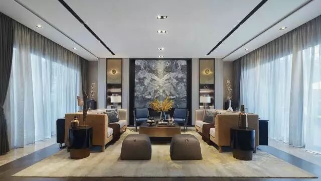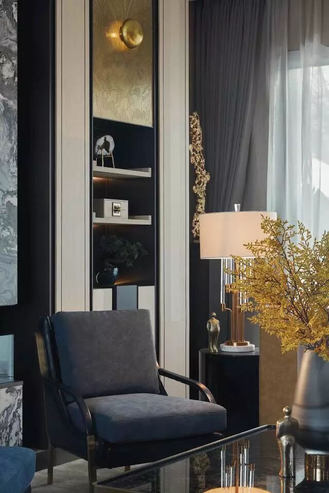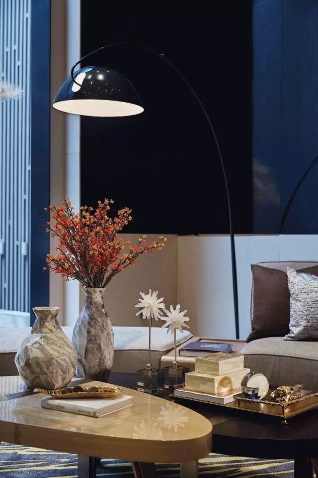 含蓄、高雅的生活方式,经典元素加以简化和丰富,家具形态更显简约与流畅,空间配色以自然大地色系主导整个空间,以沉稳、静逸的灰色与蓝色作为点缀,营造安静、奢华的空间感受。
