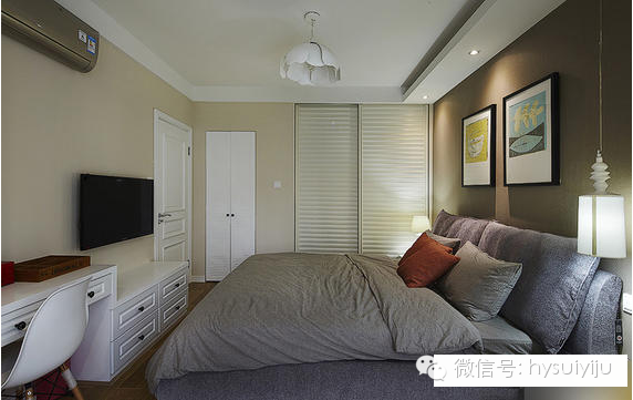 主卧,对居室空间进行合理的布置,衣柜是一个落地式的推拉衣柜间,重要的装修原则就是要充分利用室内空间
