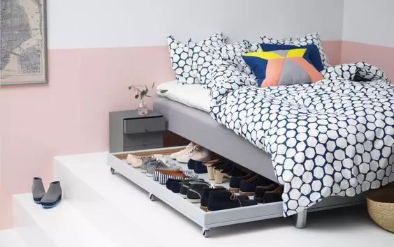 床底下的空隙不用太可惜,收几双鞋进去吧!