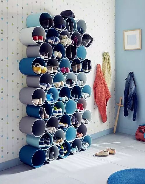 硬纸筒堆起来,也是一个完美的鞋柜哦!