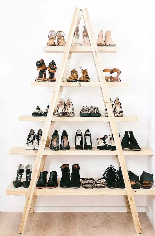 将鞋子按季节或材料放在梯子上,方便找寻。