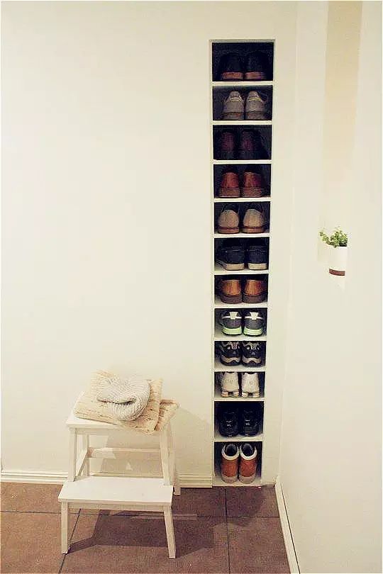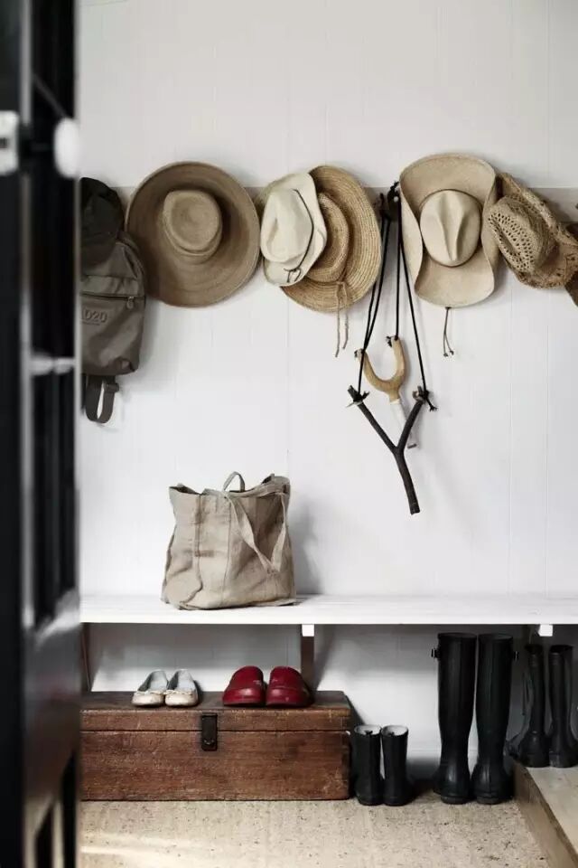 墙上的挂钩、置物架、壁龛,用来收纳鞋子,简直就是艺术品!